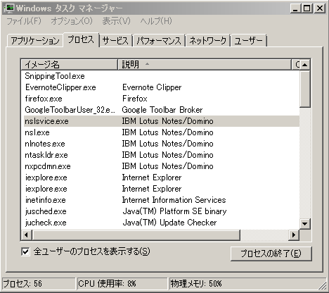 1.データのバックアップをする前にNotesDominoのサービス停止。